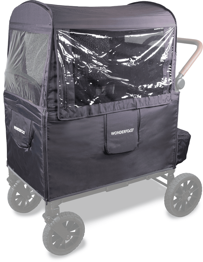 Air Circulation: The Weather Cover is designed to provide shade and protection. Although we use breathable fabric, it can still restrict air circulation in certain conditions. Be mindful of the temperature inside the stroller wagon and monitor your child's comfort. If the weather is hot or humid, consider partially or fully converting the Weather Cover from full coverage to mesh windows.