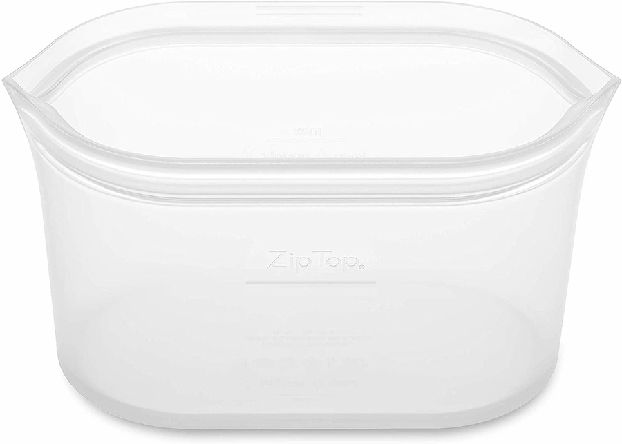 - Designed for easy use and cleaning: Single-piece construction with no glue or plastic sliders, Zip Top is the most durable and easy-to-use reusable container. The tops stay open and zippers do not overlap in the corners like normal zippers making it super easy to clean. Thick strong silicone will not tear or break keeping food fresh. No more lids!