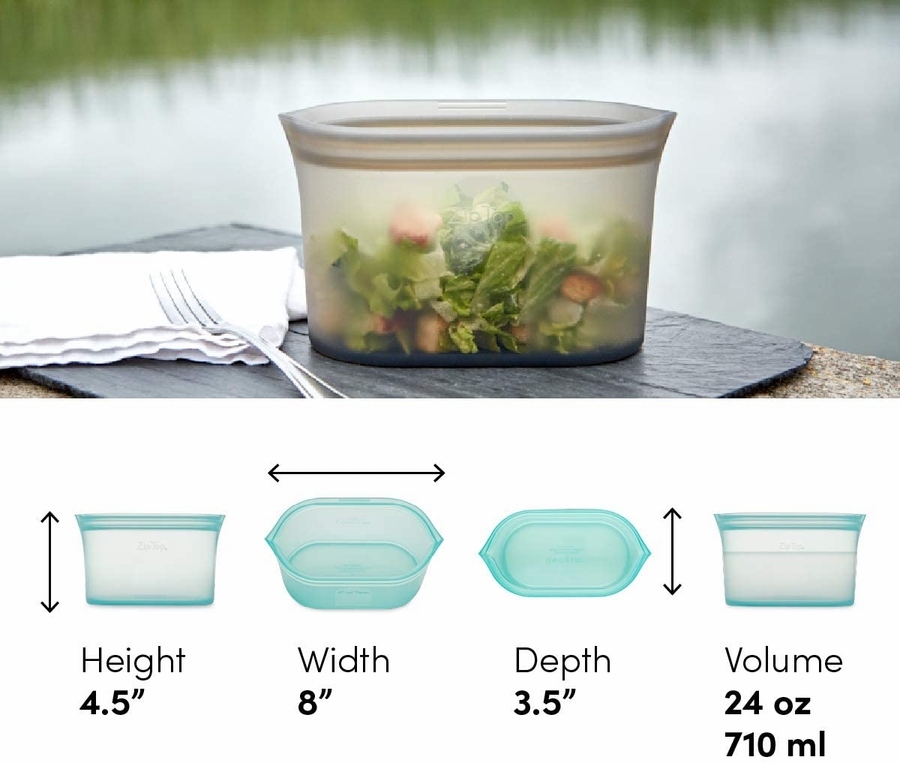 - Designed for easy use and cleaning: Single-piece construction with no glue or plastic sliders, Zip Top is the most durable and easy-to-use reusable container. The tops stay open and zippers do not overlap in the corners like normal zippers making it super easy to clean. Thick strong silicone will not tear or break keeping food fresh. No more lids!